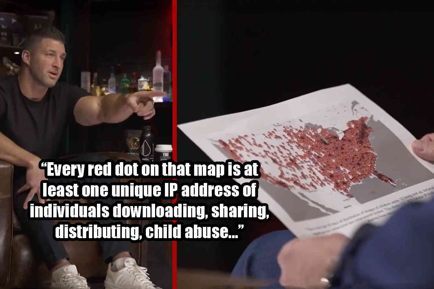 Every red dot on that map is at least one unique IP address of individuals downloading, sharing, distributing, child abuse and rape images under the age of twelve. And there's over 111,000 of them just in the U.S. of the last thirty days.