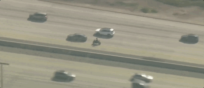 That chase came to an end when "an off-duty deputy drove a Toyota Camry" into the suspect's motorcycle.